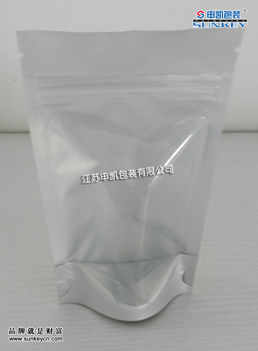 陰陽鋁箔袋為一面為鋁箔復(fù)合材質(zhì),另外一面為透明材質(zhì),是一種用途廣泛的通用型包裝袋