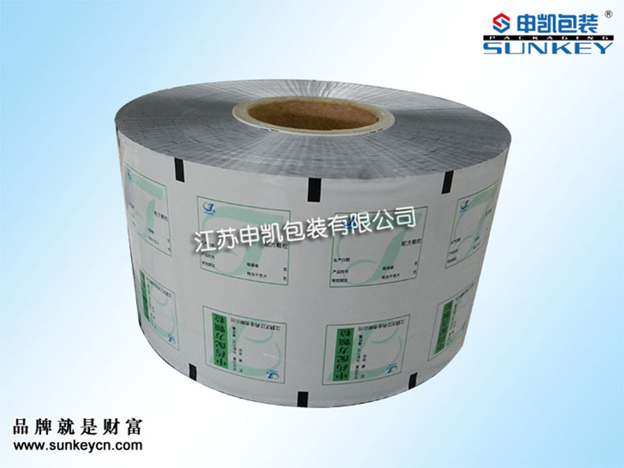 說明:顆粒鋁塑卷膜材質(zhì)一般是由PET/AL/PE組成,經(jīng)過印刷-檢品-復(fù)合-分切多層工藝。