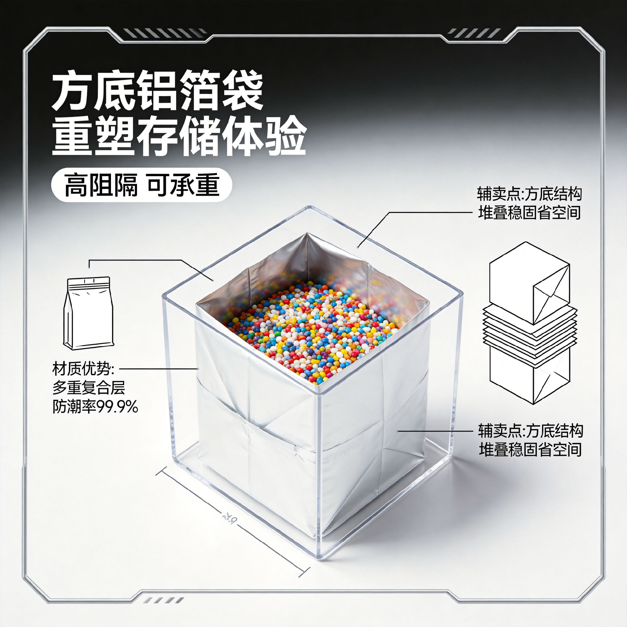 而當(dāng)方底結(jié)構(gòu)遇上高性能的 方底鋁箔袋,優(yōu)勢更是1+1>2!鋁箔材質(zhì)增加了它的阻隔性,能有效防潮、阻氧、避光,為藥品、食品等產(chǎn)品提供全方位的保護。